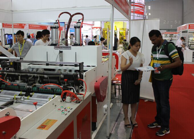 In this exhibition we show our new bag making machine and blown film machine for T-shirt bags. The blown film machine with screw diameter #45. The output near 50 kg/hour with high quality film. For good quality we use Taiwan header and screw. For the good quality and output this machine win the high attention of customers. It is especially suitable for LDPE and to make t-shirt bags.